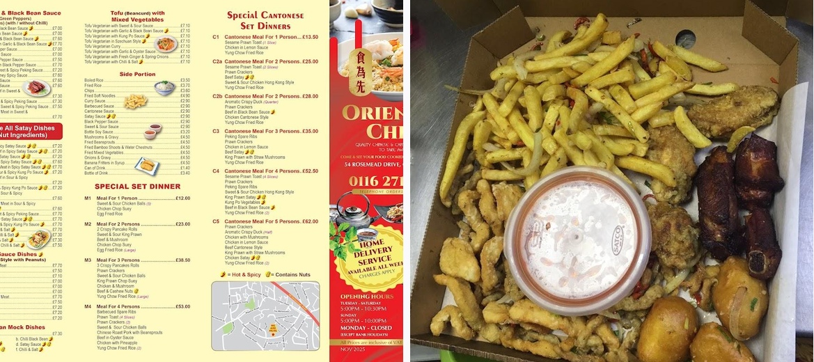Oriental Chef offers a delightful range of Chinese cuisine right in Oadby, Leicester. Located at 54 Rosemead Drive, this charming takeaway place boasts an expansive menu featuring everything from crispy appetizers to hearty main dishes. The casual atmosphere makes it an excellent choice for quick bites or a laid-back dinner. Service remains speedy and polite, whether dining in, taking out, or opting for delivery. What's better? The menu caters to various dietary preferences, with vegetarian options available. Don't forget to keep it cash-ready, as the restaurant operates on a cash-only basis.