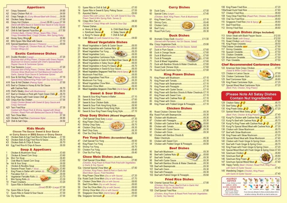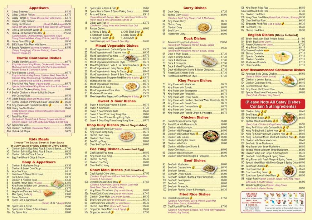 The menu at Oriental Chef is a feast for the eyes and the taste buds, featuring a whopping 203 dishes across several categories. Start with tempting appetizers like crispy seaweed or chicken satay skewers, perfect for sharing. The exotic Cantonese dishes, such as sour & hot king prawns and beef or chicken with honey & hoi sin sauce, bring a unique twist to traditional staples. Soup lovers can delight in freshly made options like won ton soup or the hot & sour variety for those who enjoy a bit of spice. Vegetarian diners have a superb selection too, with mixed vegetable dishes that range from garlic & oyster sauce to curried interpretations. Essential classics like sweet & sour dishes and chow mein are also available, alongside several duck, chicken, and prawn specialties. Updated weekly specials and chef-recommended items keep the menu dynamic and exciting.
